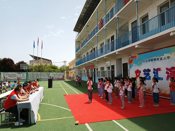 文艺汇演环节,三年级学生任梓璇宣读了一封《感谢信》,她充满了真情和温暖,表达了同学们对党、对祖国、对社会各界人士的无限热爱和无比感激;21位天真烂漫的同学为与会人士表演了手语舞蹈《谢谢你》,表达了全体师生对爱心企业家们的感谢之情;9名同学表演了由老师指导、自己编排的小品《小英雄雨来》,彰显了雨来同学不畏惧日寇威胁、敢于斗争的浩然正气;40位同学朗诵了以我自愿、我坚信、我敢愿等为主要内容的《立志文之红色文化》,声音豁亮、气势磅大。