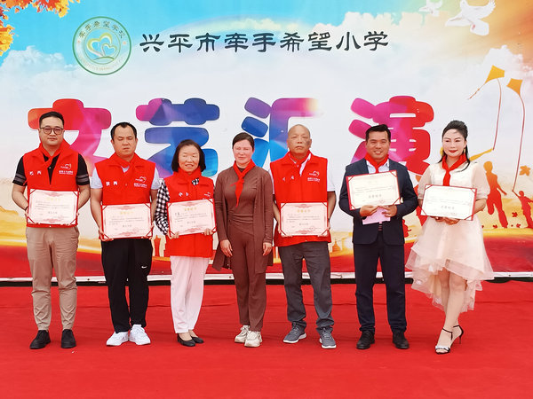 最后,志愿者与学生们手牵手围成一圈,共同高喊“牵手希望、梦想未来”,祝愿大家节日快乐、身体健康、家庭幸福。让孩子们在歌声笑声中获得快乐、自信、希望和美德,让爱心传递,成为他们今后工作、生活中的一束光,照亮自己、他人和社会。