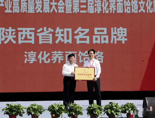 本次淳化荞面饸饹获得陕西省知名品牌,是在6月份,由来自我省品牌评价委员会专家通过对农产品地理标志、制作工艺、生产规模、荞面研发等方面严格审核,按照《农产品、农副产品评价规范》,并向社会公示,确定“淳化荞面饸饹”品牌为陕西省知名品牌。陕西省企业品牌建设促进会高级顾问局执行主席、省人大常务委员、外事侨务委员会主任董宪民向淳化县委副书记相俊授牌,并宣读了《关于淳化荞面饸饹评价为陕西省知名品牌的通报》。通报中指出,“淳化荞面饸饹已建成一个具有引领作用,推动县域经济发展的产业和品牌”。充分肯定了淳化县在品牌建设中做出突出贡献。陕西省企业品牌建设促进会,将把淳化荞麦产业品牌推向全国、推向世界。