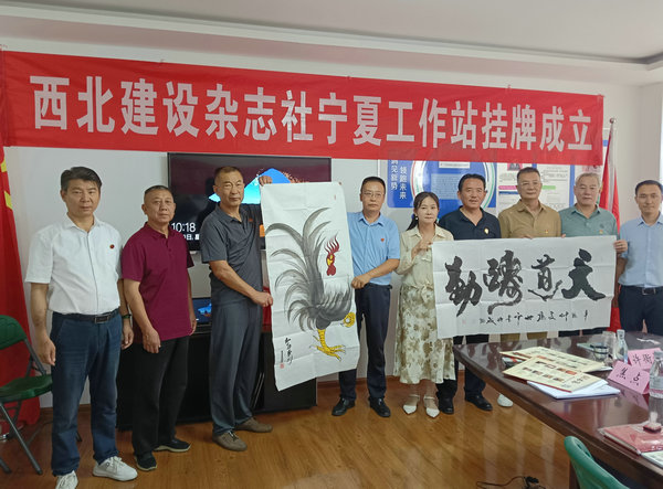7月13日上午,西北建设杂志社宁夏工作站揭牌仪式在宁夏回族自治区首府银川举行。西北建设杂志社总编辑许衙评,马中印(尼)文化友好协会会长任全德、副会长马长英,宁夏工作站站长郭锋共同为宁夏工作站揭牌。本次活动由马中印(尼)文化友好协会秘书长杨慧栋主持。