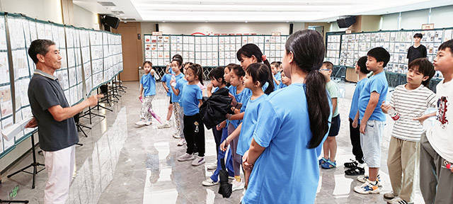 会议在领导致辞和为“深圳市南头城实业股份有限公司关心下一代工作委员会”揭牌后,集邮家们为嘉宾党员群众现场讲解展览内容。