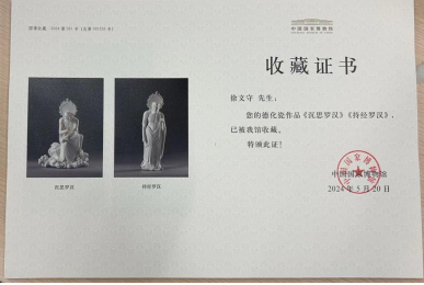 今天本文的两尊白瓷艺术品“沉思罗汉”和“持经罗汉”便是出自中国德化瓷都徐文守艺术馆徐文守艺术家之手!这两尊作品已被中国国家博物馆收藏!文物承载灿烂文明,传承历史文化,维系民族精神,艺术之巅属于中国,而中国藏馆之巅自然是中国国家博物馆!每一件藏品都是国宝,需世代呵护!