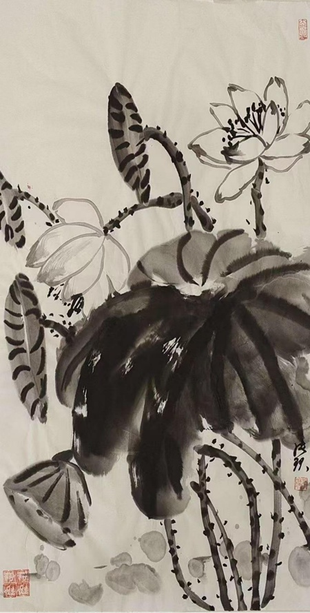 张珺妙手传神韵,菡萏娇容绝俗埃。