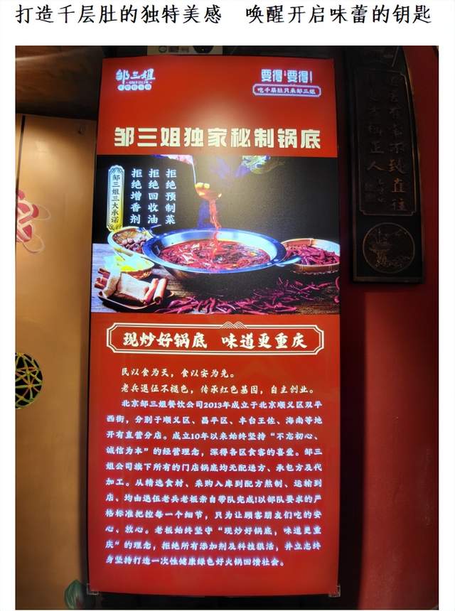 食材方面,邹三姐十年如一日地坚持手工菜、鲜货类等核心产品的研发、腌制、推广。职业管理、安全管理等方面,均达到行业极高标准。邹三姐品牌表示,美食不仅仅是为了满足口腹之欲,更是一种生活的享受,一种情感的交流,围坐在火锅前,热气腾腾的氛围,欢声笑语间,处处都是美好。