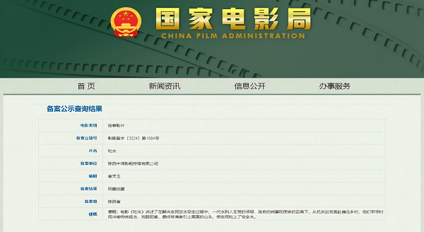 陕西重大水利改革题材电影《吃水》获国家电影局批复并公示