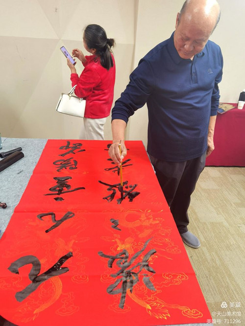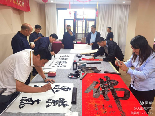 今天的书画艺术交流活动意义之大,请老师们各自发挥擅长,要以独特的艺术魅力讴歌伟大的祖国,为所有的老年朋友们送上美好的祝福!