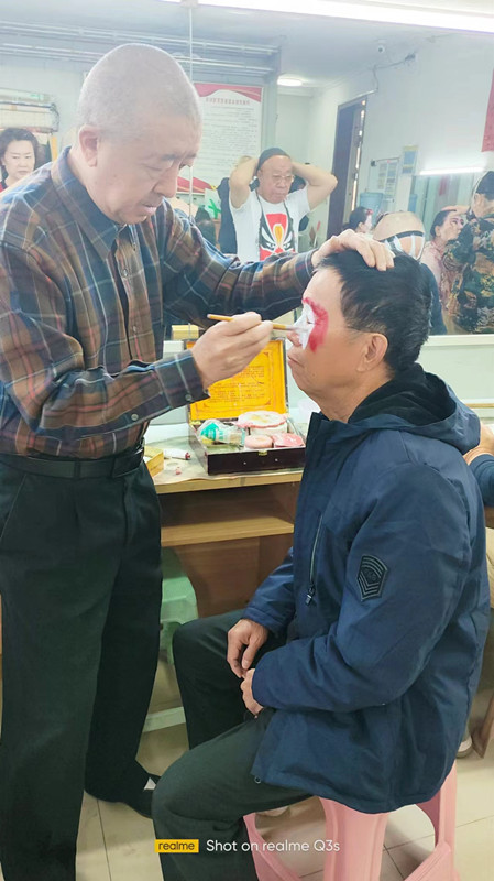 应山东济南京剧联谊会诚邀,山东青州市新亚古城老干部京剧社在社长马传根先生的带领下,青州名票一行来到济南英雄山京剧广场,为泉城观众带来了一场京剧的盛宴,令全场观众满堂喝彩,掌声不断,如痴如醉,十分过瘾!上午七点,大家早早的来到剧场,开始了演出前紧张的准备工作,灯、服、道、效、化各负其责!大家紧密配合,井井有条,忙而不乱,为演出成功做好了各项准备工作!