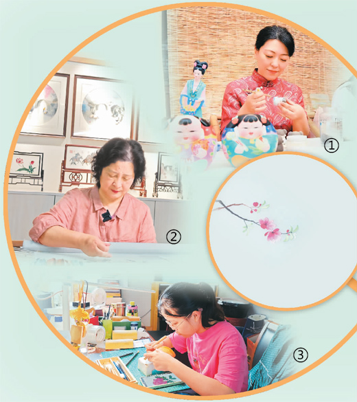 图①:惠山泥人厂高级工艺美术师周璐正在创作泥人彩绘。