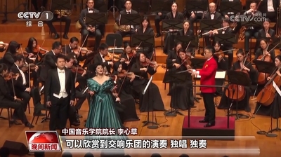 中国音乐学院院长 李心草:大家在一场音乐会里,可以欣赏到民族乐团的演奏,也可以欣赏到交响乐团的演奏,欣赏独唱、独奏、重唱、重奏、合唱等多种形式的具有中国风的音乐会,所有的曲目都是中国曲目。