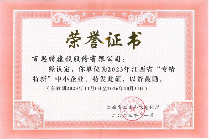 南昌市建筑业协会副会长单位百思特建设有限公司作为国家高新技术企业,早在2023年即荣获国家级”专精特新“企业称号。该公司拥有3个总承包壹级资质(市政公用工程施工总承包、建筑工程施工总承包、机电工程施工总承包)、5个专业承包壹级、3个专业承包贰级、3个总承包叁级、3个专业承包叁级以及地质灾害防治单位施工乙级、承装(修、试)电力设施许可四级、施工劳务不分等级以及信息通信网络系统集成企业服务能力丙级等多种类资质。通过了GB/T19001-2016质量管理体系认证,GB/T24001-2016环境管理体系认证、GB/T50430-2017《建筑施工企业质量管理规范》、GB/T45001-2020职业健康安全管理体系认证。公司年施工项目达 100余项,施工项目受监率和合同履行率100%,竣工验收质量合格率100%,获得多项省优、市优工程奖项、安全生产文明样板工程。参加了国标《GBT38319-2019 建筑及居住区数字化技术应用智能硬件技术要求》和《GBT 39583-2020既有建筑节能改造智能化技术要求》的编写,取得了“大型建筑绿色改造方案设计评价系统”、“智能建筑的电气设计消防系统”、“环境质量监控系统”等18项专利技术,有着深厚的技术积淀。