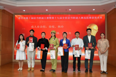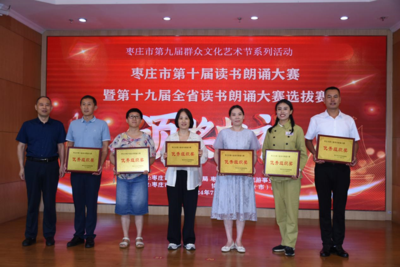 大赛历时三个月,由各区(市)图书馆组织报名、初赛选拔,最终32组选手晋级本次市级大赛。经过激烈角逐,两个组别共评选出一等奖4组,二等奖13组,三等奖15组。颁奖现场,主办单位为获奖选手颁发了奖品和荣誉证书。此次比赛的优秀选手将代表枣庄市参加第十九届全省读书朗诵大赛。