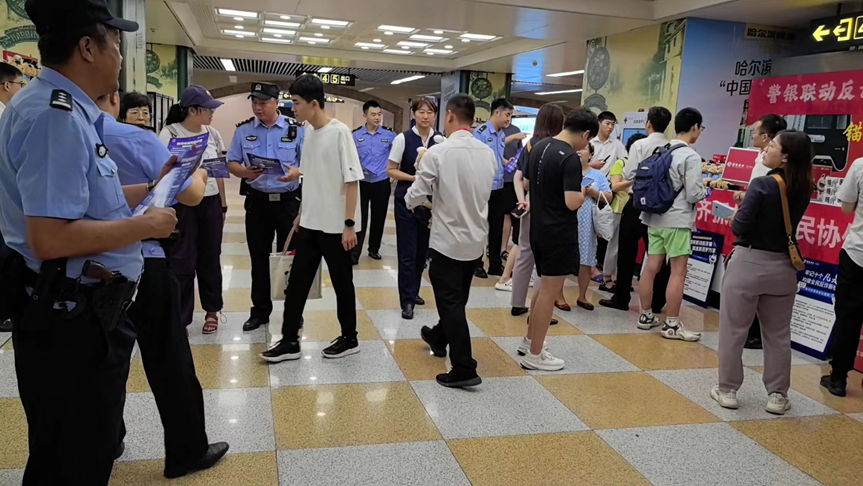 中国融媒网讯(朱善永 潘宇)为进一步提高广大乘客的反诈意识,有效预防和遏制电信网络诈骗案件的发生,7月23日,哈尔滨市公安局反诈中心、公交分局与招商银行哈尔滨分行、信用卡中心哈尔滨分中心在地铁车站联合开展了“警惕诈骗新手法,不做电诈工具人”为主题的宣传活动。