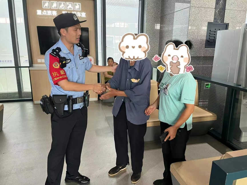 8月6日上午,上海铁路公安处张家港站派出所民警接到一名旅客求助,旅客声称自己在高铁上遇到了一位同乡的安徽老人,老人讲不清楚自己的最终目的地,也没有带手机等联络工具,所以想要寻求民警的帮助。