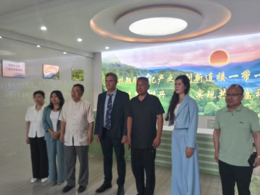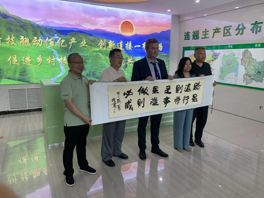 中国融媒网讯(张海江 刘文良)8月20日,俄联邦巴什科尔托斯坦共和国医学会主席阿扎马特先生,世界中医联合会一技之长专委会会长、河北中医科学院副院长曹东义先生,秘书长张培红女士,以及陪同翻译(中医硕士)巴永丽女士等一行十几人,应邀莅临河北(武安)泽丰农业科技公司参观考察连翘产业发展。武安市工业园区副主任王海涛陪同参观,泽丰农业科技公司董事长张跃红进行了接待。