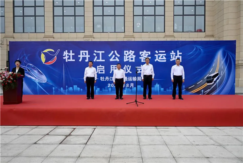 牡丹江市委常委、秘书长、统战部部长孙涛宣布牡丹江公路客运站正式启用,副市长高忠远致辞,市人大副主任于慈森、市政协副主席孙吉舜出席启用仪式,市交通运输局局长邱海燕主持仪式。
