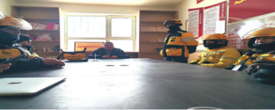 图为:新疆阿克苏地区温宿县温宿镇凤溪社区党支部动员组织辖区“先锋骑手”志愿服务队的外卖小哥参与社区治理和志愿服务(孔繁梅摄)