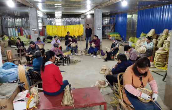 2025年3月朝阳帽业公司为残疾人群众开展竹编安全帽编织技能的集中培训。