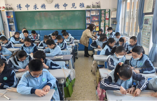 2025年4月朝阳帽业公司技术人员为前埔南区小学学生开展非遗竹编课堂培训。