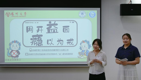 憧憬未来,依托专业知识,创新活动形式,扬州大学法学院网开“益”面实践调研团将继续组织网络游戏成瘾防治的各类活动,为青少年网络游戏成瘾预防与治理工作贡献青春力量,为青少年的身心健康与茁壮成长保驾护航!
