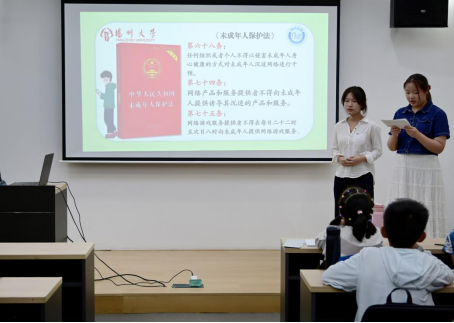 中国融媒网http://www.hkzlcm.com/江苏扬州讯(彭富培 顾颖)青少年身心健康是“民之关切”,也是“国之大者”。近年来,青少年网络游戏成瘾现状每况愈下,互联网技术的指数型发展使得“趣味横生”的网络游戏层出不穷,而正处于人生拔节孕穗期的青少年极易掉入网络游戏“放松休闲”的“羊皮”圈套,被其精神鸦片般腐蚀着心灵、控制着大脑、危害着身体。为此,2025年7月15日,扬州大学法学院网开“益”面实践调研团走进扬州市竹西社区,为该社区暑托班的同学们讲授“开学第一课”,进一步助力社区内青少年建立起正确的网络游戏自我规范,培养起敏锐的网络游戏防瘾意识。