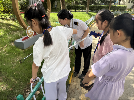 经过一个小时的努力,社区公共区域的环境焕然一新。在成果分享环节,孩子们兴奋地展示着自己的“战利品”。
