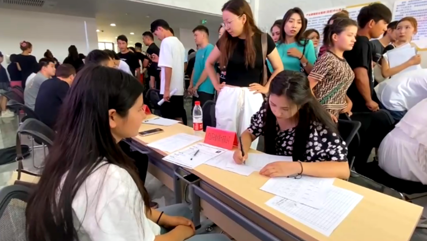 图为:为全面服务高校毕业生高质量就业,7月8日在温宿县就业服务中心组织县域23家企业开展高校毕业生专场招聘活动,为求职者和企业搭建供需平台