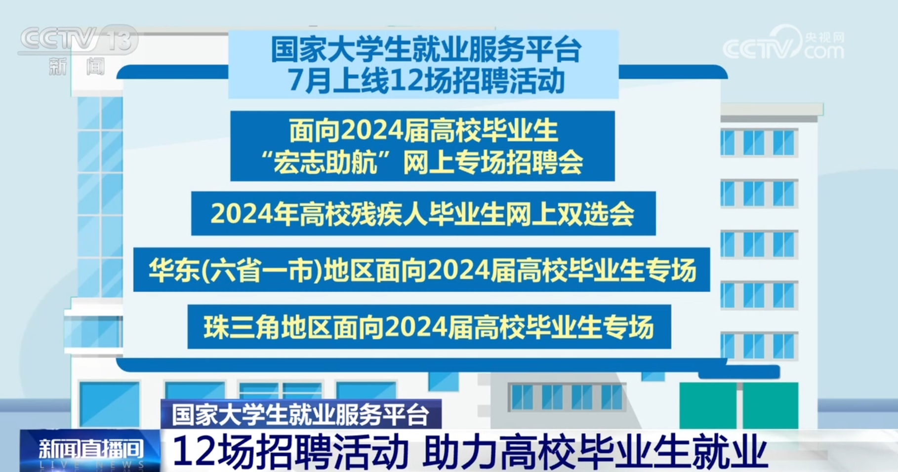 央视网消息:为全力推动高校毕业生顺利就业,教育部国家大学生就业服务平台7月上线12场招聘活动,为毕业生提供岗位支持。