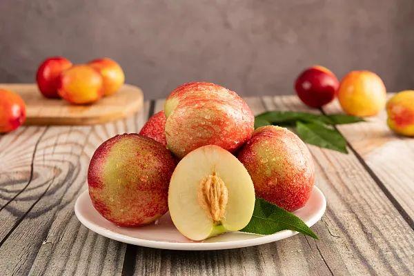 膳食纤维含量高:油桃的膳食纤维含量为1.5克/100克,是水蜜桃(0.6克/100克)的2倍多。而且,油桃中可溶性膳食纤维占40%,不仅能延缓胃排空、控制食欲,抑制碳水化合物吸收速度、减少血糖波动,还是肠道菌群的“食物”,对肠道健康很有帮助。