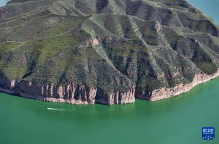 这是8月12日拍摄的老牛湾南侧的一处黄河峡谷(无人机照片)。