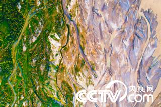 2024年8月12日,新疆阿克苏乌什县,托什干河国家湿地公园亚曼苏乡河段在朝阳的映照下宛如大地彩绘,美景如画。