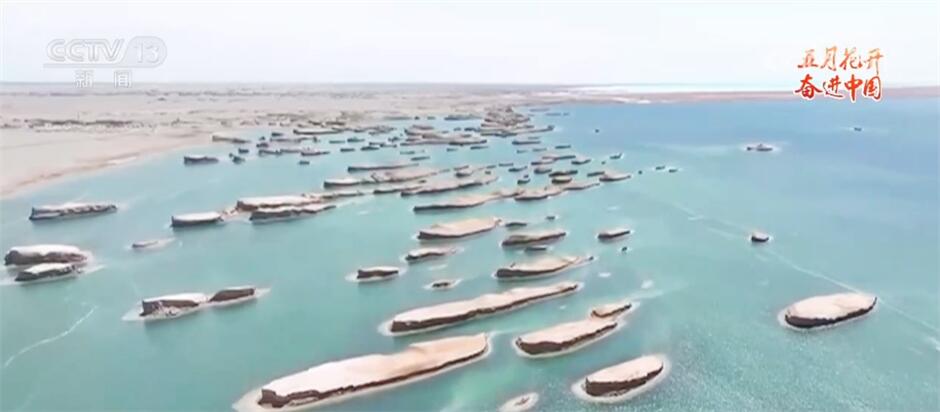 这里是位于青海柴达木盆地西北部的乌素特水上雅丹景区,戈壁湖泊的水质清澈,在蓝天白云的映衬下,呈现出蔚蓝、青绿、碧绿等不同色彩。造型奇特的小山包散布在湖泊中,有的如舰队列阵,有的似鲸背浮出水面,与碧波荡漾的湖水、远处的戈壁沙漠交相辉映。独特的自然景观和地质特征吸引着越来越多的游客前来观光。