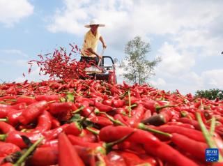 9月13日,在四川省达州市达川区堡子镇长垭村,村民在晾晒收获的红辣椒。