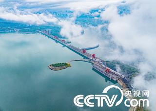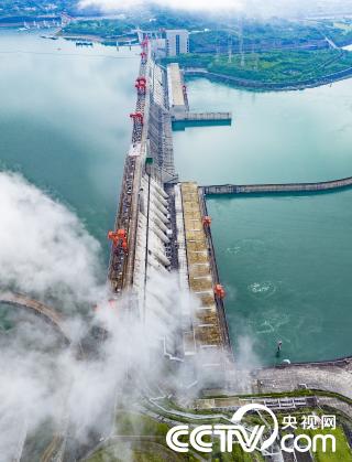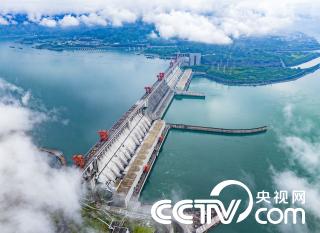 2024年5月4日,一场大雨过后,湖北省宜昌市三峡坝区云雾缭绕,把三峡大坝装扮的更加雄伟壮美。