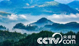 9月14日,重庆酉阳土家族苗族自治县丁市镇,山道蜿蜒,霞光斜射,云雾缭绕。