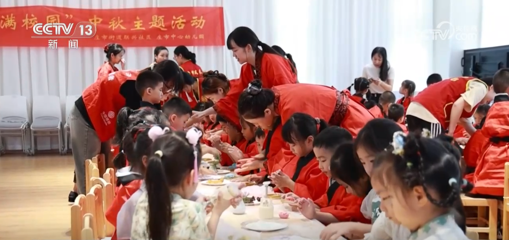 在浙江宁波镇海区庄市街道中心幼儿园里,小朋友们正在老师和志愿者的帮助下亲手制作冰皮月饼。揉面、包馅,再将定形的面团放入模具中,一压一推,一个个色彩缤纷的冰皮月饼脱模而出。制作过程中,志愿者们还讲述了中秋节的由来、传说故事以及月饼所承载的寓意,让孩子们在轻松愉快的氛围中感受传统文化的魅力。