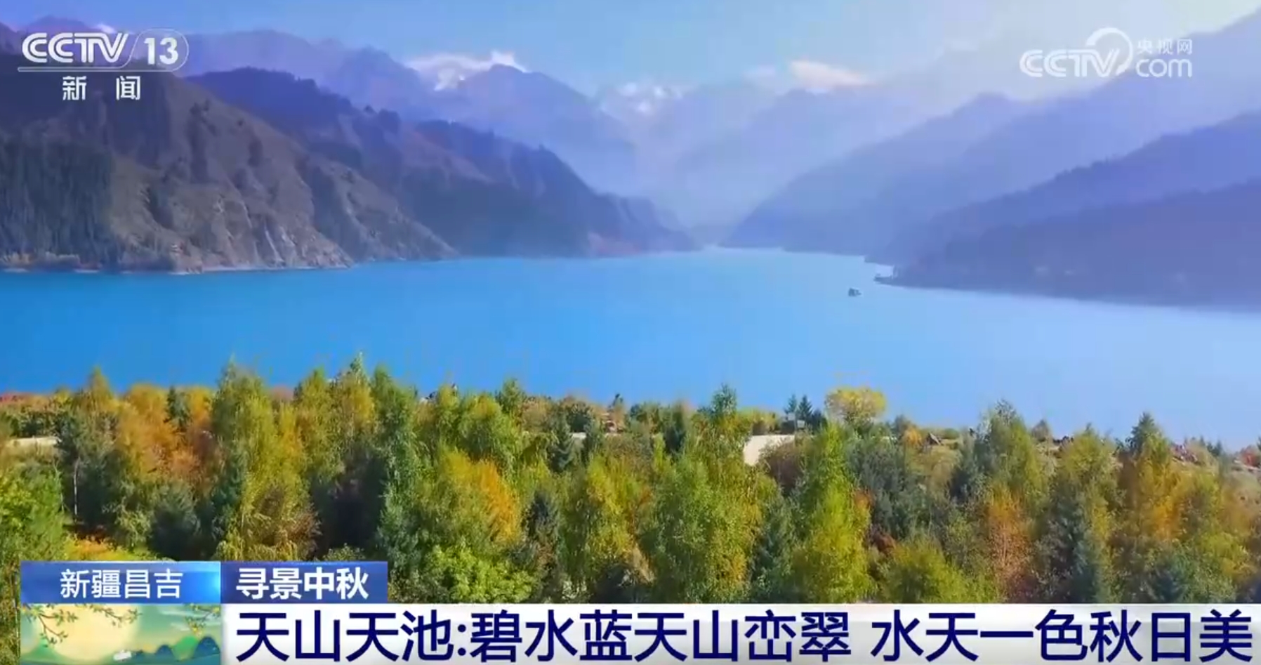 央视网消息:秋色斑斓,山河锦绣。您现在看到的是位于新疆昌吉州阜康市的天山天池景区,这里汇集了雪山、森林、草地、湖泊……景观壮美、风光如画。从空中俯瞰,天山天池像一块翡翠镶嵌在群山之间,乘船游览其中如在仙境。湖边的植物开始逐渐变黄,呈现出一幅层次丰富的秋日画卷,游客们穿行其间,移步换景,享受美好中秋假期。