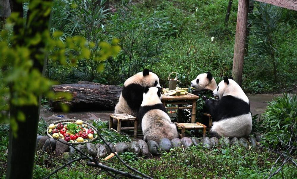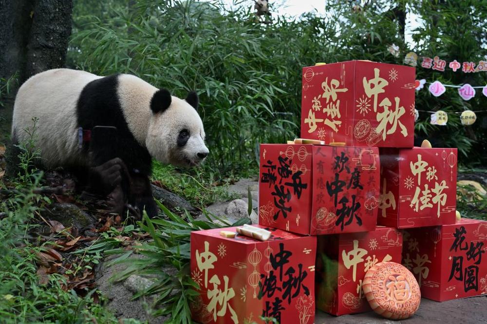 中国大熊猫保护研究中心:大熊猫“吃月饼”欢度中秋