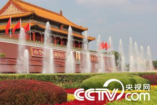 2024年9月19日,国庆节将至,北京天安门城楼东西两侧绿地花团锦簇布置一新,营造出浓厚的节日氛围。 视觉中国