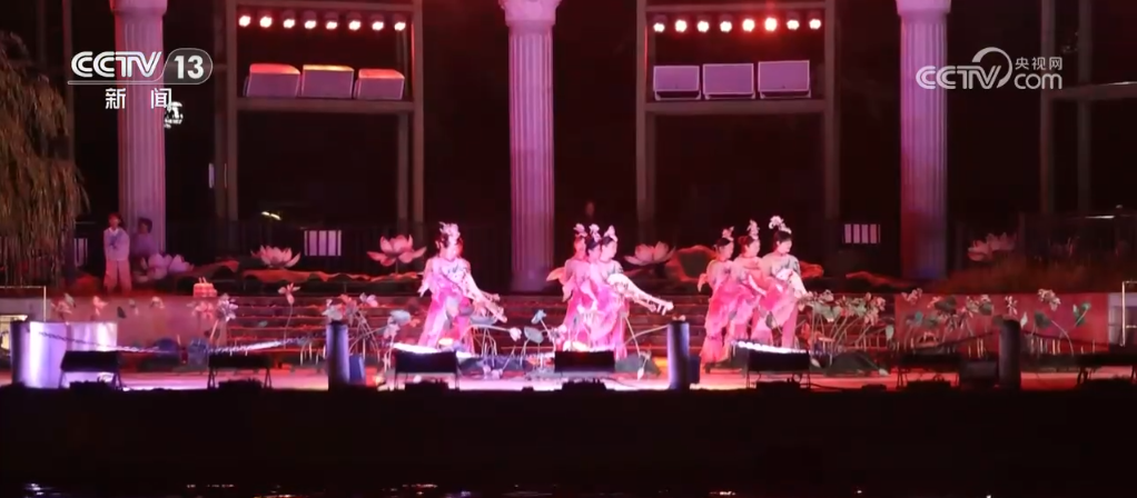 在湖南常德沅江江畔,人们乘船顺流而行,两岸舞台一幕幕的传统戏剧、音乐剧让人目不暇接。