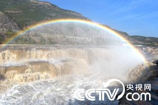 近日,受上游降雨和水库调节放水影响,黄河壶口瀑布水量增大,水势浩荡,飞溅的水雾在阳光的照射下,形成彩虹桥景观,吸引了众多游客。