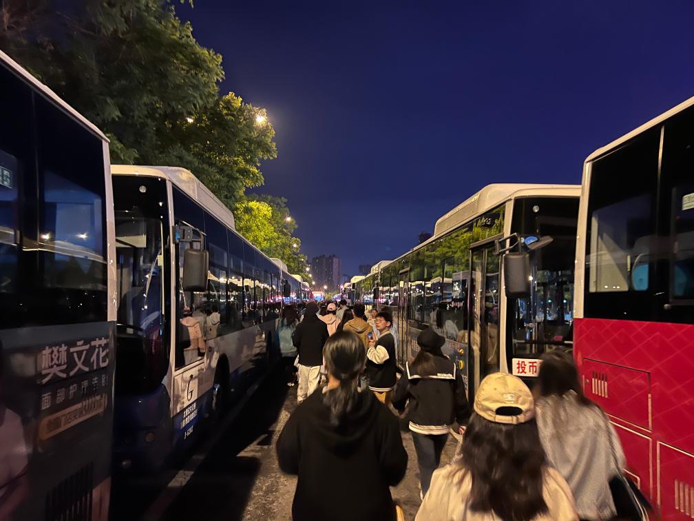 太原演唱会散场后,观众有序乘坐免费接驳车。新华社记者 马晓洁 摄