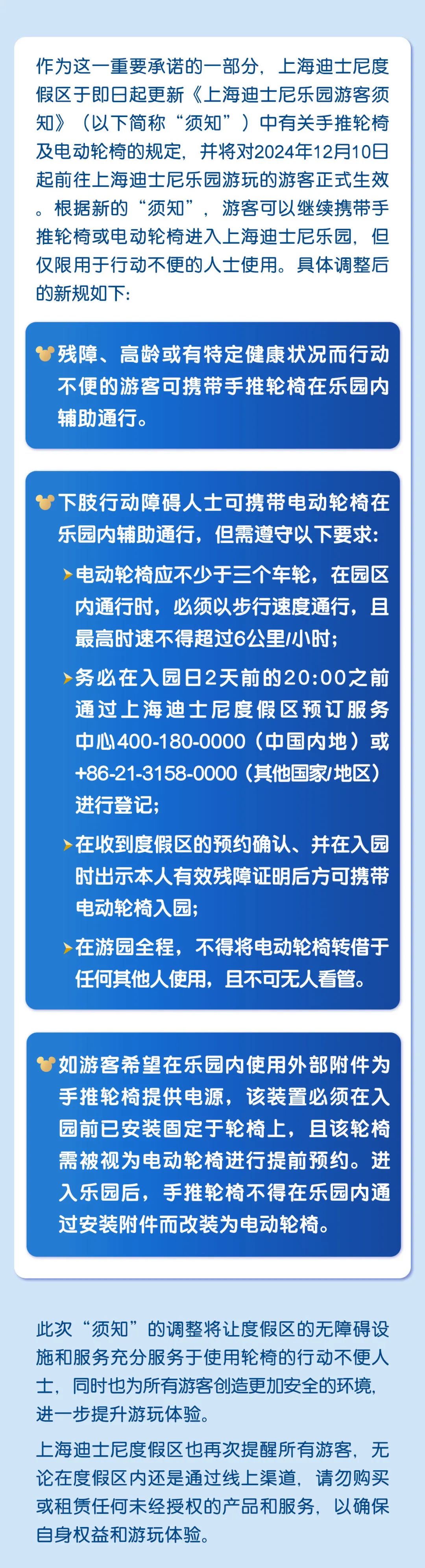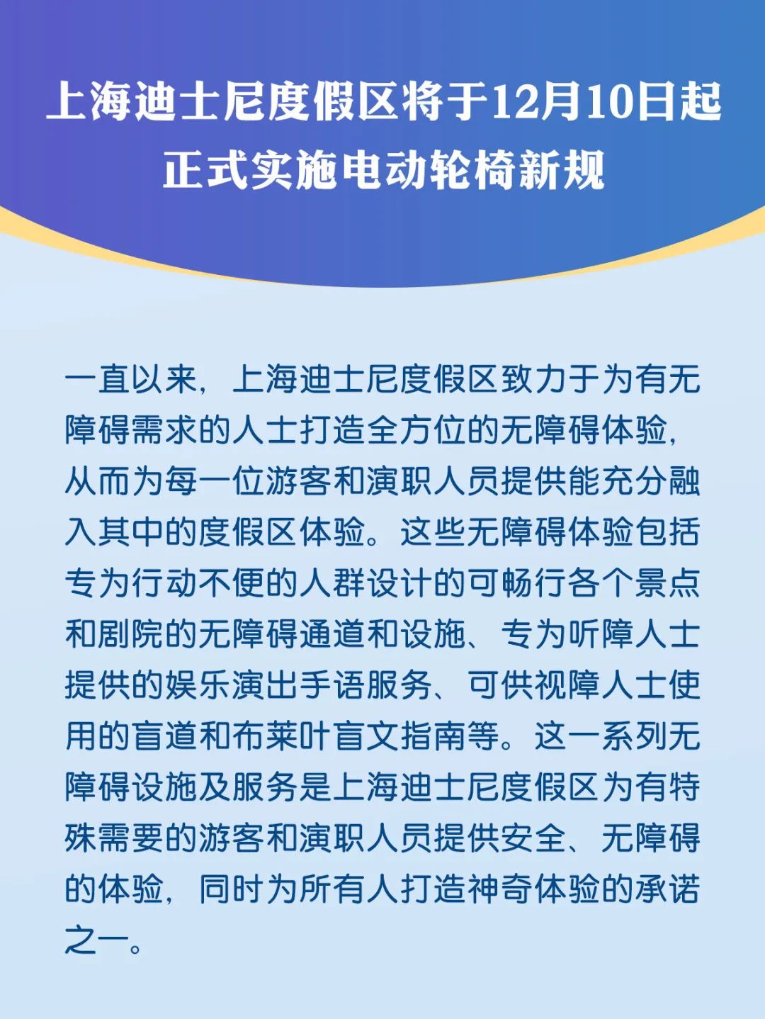 上海迪士尼度假区宣布将于12月10日起正式实施电动轮椅新规。