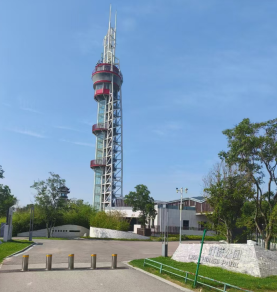 入园第一眼,视线就被两座灯塔攥住了。1986年的老塔立在东侧,砖身爬着浅淡的青苔,浸着岁月的温厚,像位沉默的老者,守着长江与运河交汇的晨雾与暮色;2008年建成的新塔截然相反,66.9米的身姿拔地而起,刺破天际,国内首创的大弧形LED组合模块贴在塔身,阳光下泛着冷冽的科技感——这便是“江河之眼”,也是名副其实的“全国内河航标第一灯塔”。46.1米直径的航标灯笼悬在塔顶,灯光能穿透十几里的江面雾霭,为长江上的巨轮、运河里的货船拂去迷茫,像一双始终睁开的眼睛,护着南来北往的平安。