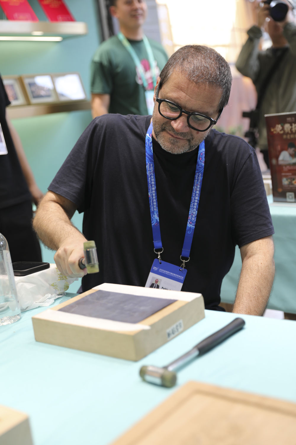 在昆明官渡古镇体验乌铜走银非遗技艺,乌拉圭国家视听传媒署署长、国家电视台台长埃丽卡·霍夫曼·豪赫赞叹:“文旅融合让非遗走出展柜、走入生活。”