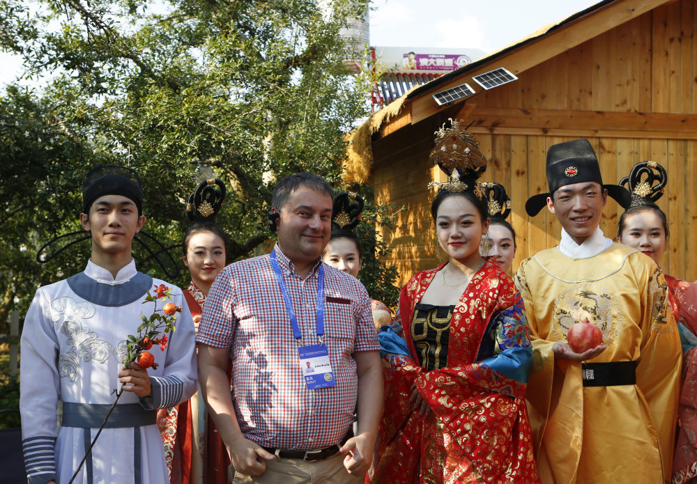 9月8日,与会代表在红河州蒙自市百年古树石榴园留影。新华社记者 陈为 摄