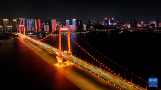 秋夜里的武汉,长江大桥上的灯光与两岸的都市霓虹交织,绘就一幅流动的江城夜景画卷。