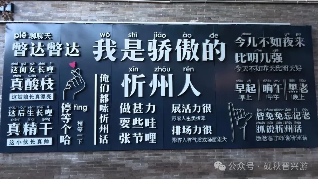 古城的街巷,弥漫着岁月的烟火气,忻州话就似那袅袅炊烟,萦绕在游子心头。打卡墙上一句句熟悉的乡音,将记忆拉回到那旧时光。“作甚哩”“真酸枝”,简单的字眼,却饱含着对这片土地深深的眷恋。忻州大地,英雄辈出;忻州话语,掷地有声!在这打卡墙跟前,我们以忻州话为旗,以乡情为帆,乘风破浪,勇往直前。“外达”是我们的方向,“自家”是我们的力量,让世界都听到忻州声音。