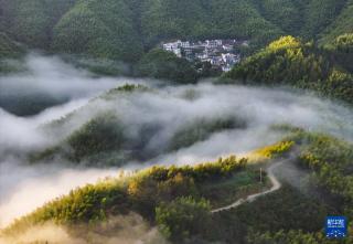 10月16日,秋雨初歇的安徽省黄山市黟县宏村镇木坑竹海景区云海涌动,萦绕于漫山竹林之中,鳞次栉比的徽派民居与流动的云雾交织,宛若诗意仙境。