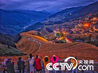 广西桂林:龙脊梯田夜景璀璨 点点灯光点缀其间