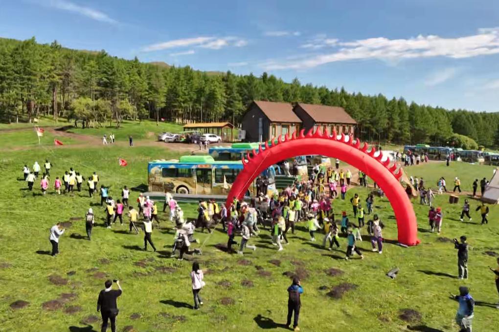 6月7日,游客在参加阿尔山登山季系列活动开幕式。新华社发